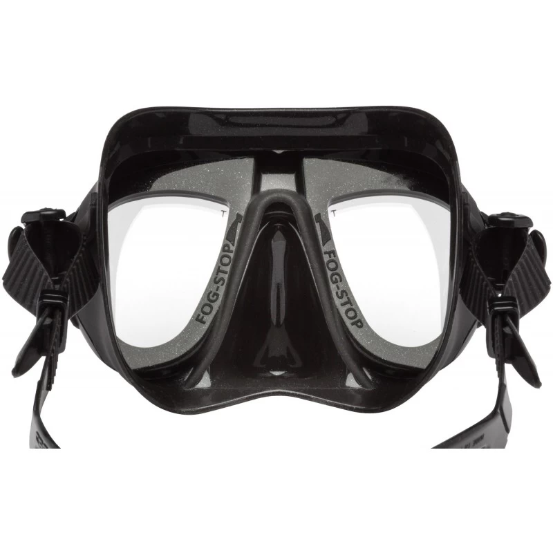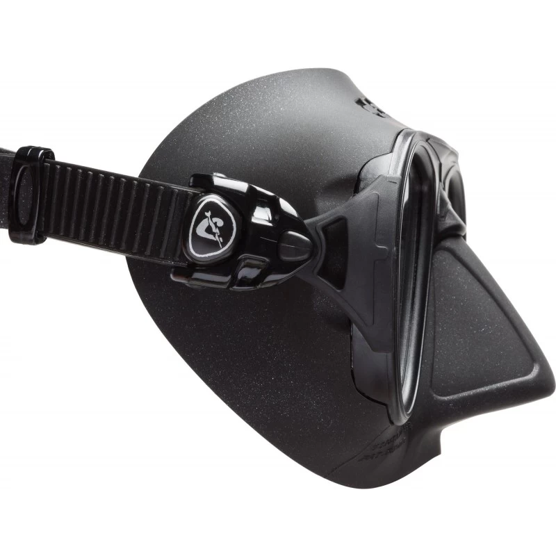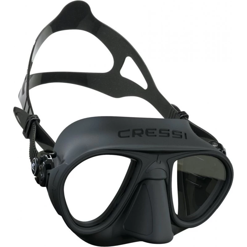 Grâce à la disposition des verres en oblique, le Calibro est le seul masque Cressi combinant un volume intérieur minimal & un champ de vision particulièrement étendu.
