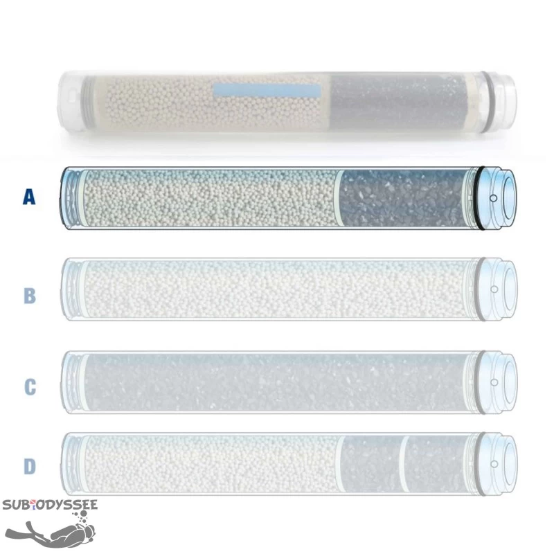 Cartouche de filtration air respirable, charbon actif & tamis moléculaire non rechargeable.