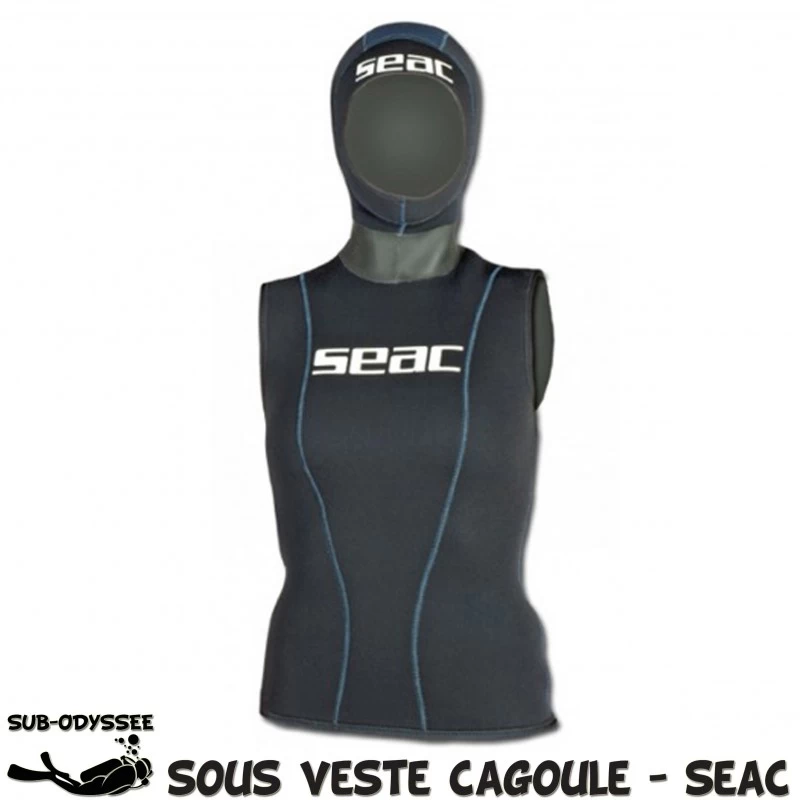 Sous-combinaison avec cagoule intégrée en néoprène super élastique, aux épaisseurs différentes sur la cagoule (5 mm) & sur le plastron (3,5 mm).