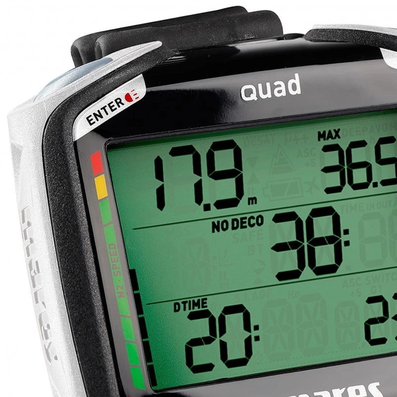 En résumé, le Quad promet une visibilité hors normes, encore plus importante que le Nemo Wide, un ordinateur complet, polyvalent & multigaz à un prix raisonnable, facile à régler, à lire, & à plonger ! Il se connecte à l’interface Dive Link 2 Mares, bien connue des plongeurs déjà adeptes du Puck Pro, Smart & Smart Apnea !